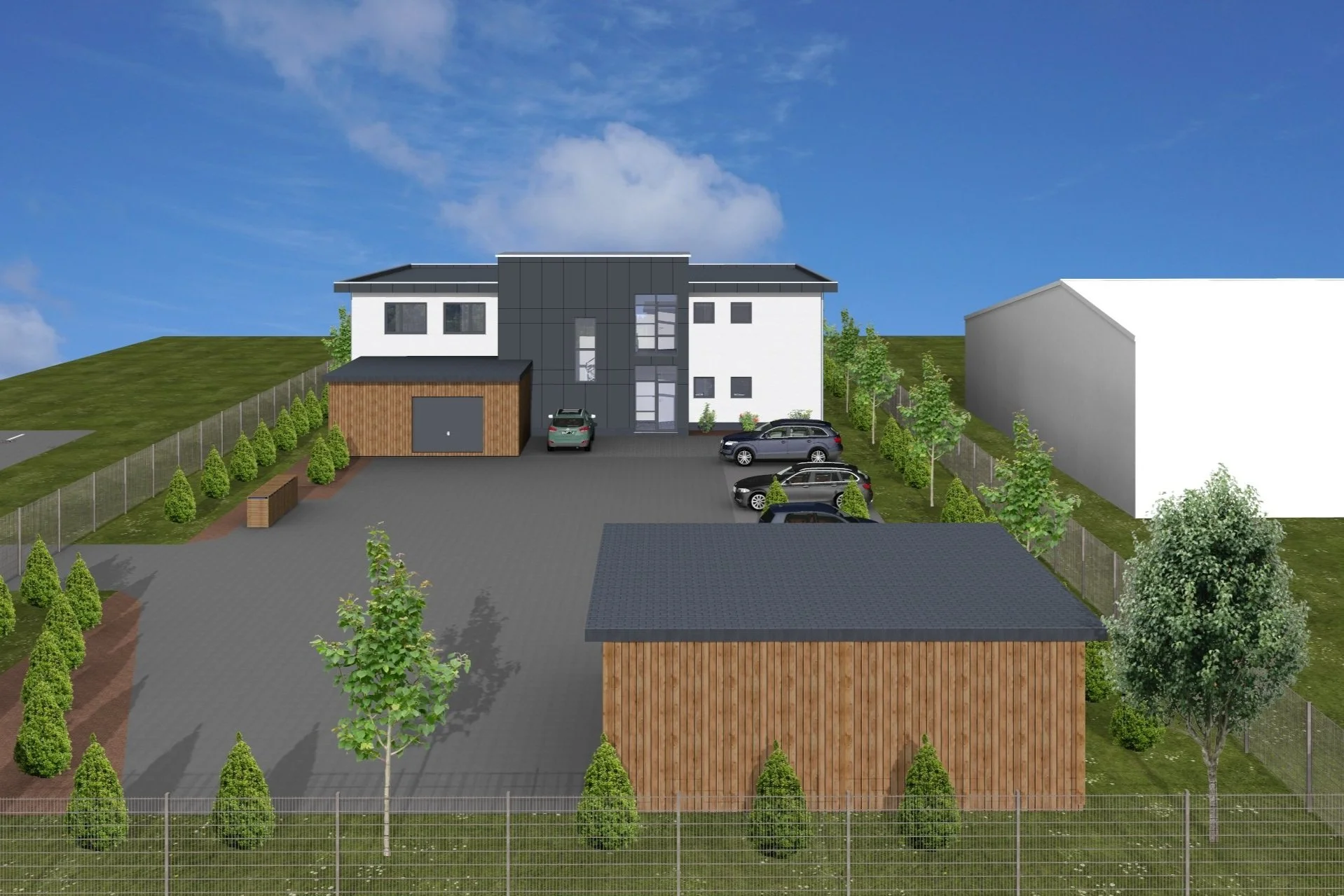 aktueller Bautenstand Bürogebäude / Werkstatthalle: Fertigstellung und Übergabe an den Bauherren 08/2023